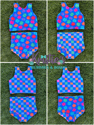 Flower/ Checkered Reversible Bikini